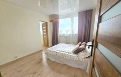 Mieszkanie składa się z trzech wygodnych sypialni, przestronnego salonu połączonego z kuchnią oraz eleganckiej łazienki. Duże okna zapewniają doskonałe doświetlenie i spektakularny widok na panoramę miasta, szczególnie efektowny o zachodzie słońca.