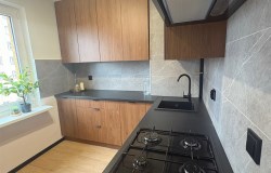 Kuchnia z oknem, wykonana na wymiar, w pełni wyposażona w nowe sprzęty AGD: